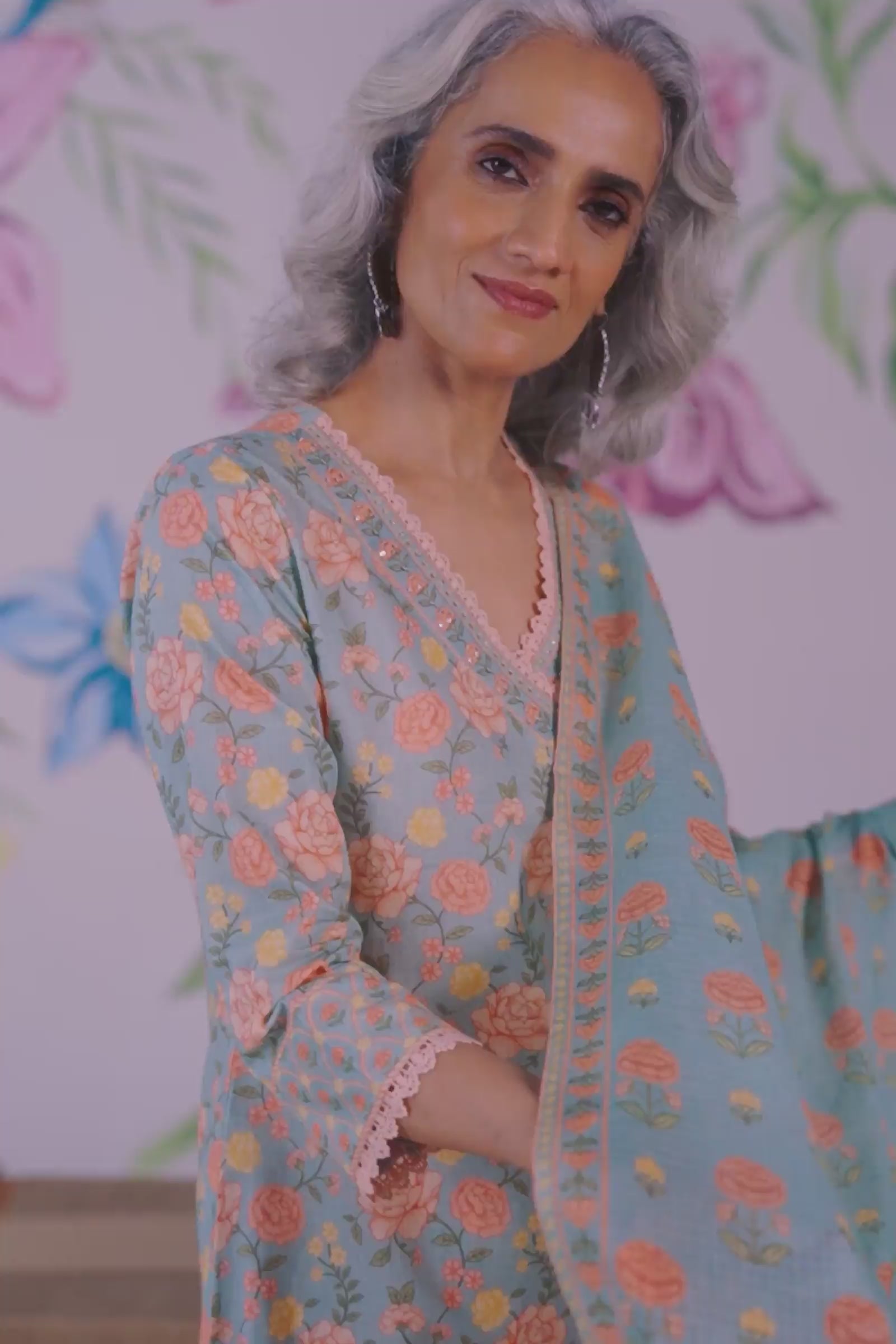 Crafted from soft cotton, the Mahnoor Mahek Kurta flows in a soothing aqua blue, its straight silhouette offering effortless grace. A fusion of delicate rose trellis prints graces the fabric, while intricate hand embroidery and fine lace detailing bring depth and refinement.
